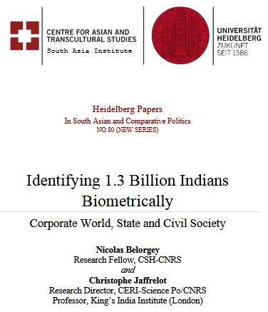 In Articles in Academic Journals 0 Nicolas Belorgey & Christophe Jaffrelot (2021), “Identifying 1.3 Billion Indians Biometrically” Heidelberg Papers in South Asian and Comparative Politics , (16 July 2021)
