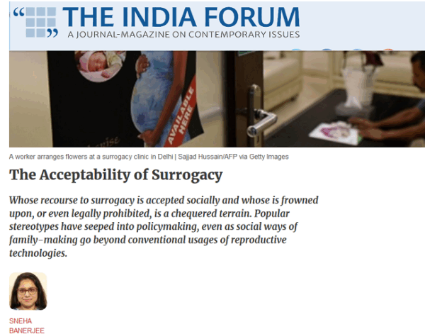 In Popular writing and other publications 0 Banerjee, Sneha. 2023. “The Acceptability of Surrogacy.” The India Forum, September 7.