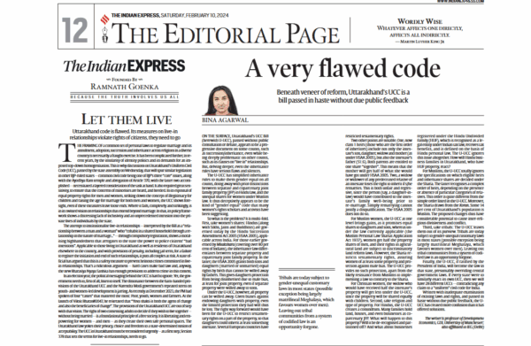 In Popular writing and other publications 0 Agarwal, Bina. 2024. “A Very Flawed Code” Indian Express, February 10.
