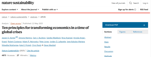 In Articles in Academic Journals 0 Kenter, Jasper O., Simone Martino, Sam J. Buckton, Sandra Waddock, Bina Agarwal. et al. 2025. “Ten Principles for Transforming Economics in a Time of Global Crises.” Nature Sustainability.