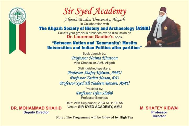 CSH is delighted to announce that Dr. Laurence Gautier, head researcher of the “Documenting Democracy: History, Politics, and Citizenship” research area of the CSH, has been invited by the Sir Syed Academy, Aligarh Muslim University (AMU) for a discussion on her book titled “Between Nation and ‘Community’: Muslim Universities and Indian Politics after Partition”. The event is in collaboration with the Aligarh Society of History and Archaeology and will take place on September 24, 2024, at 11 am.