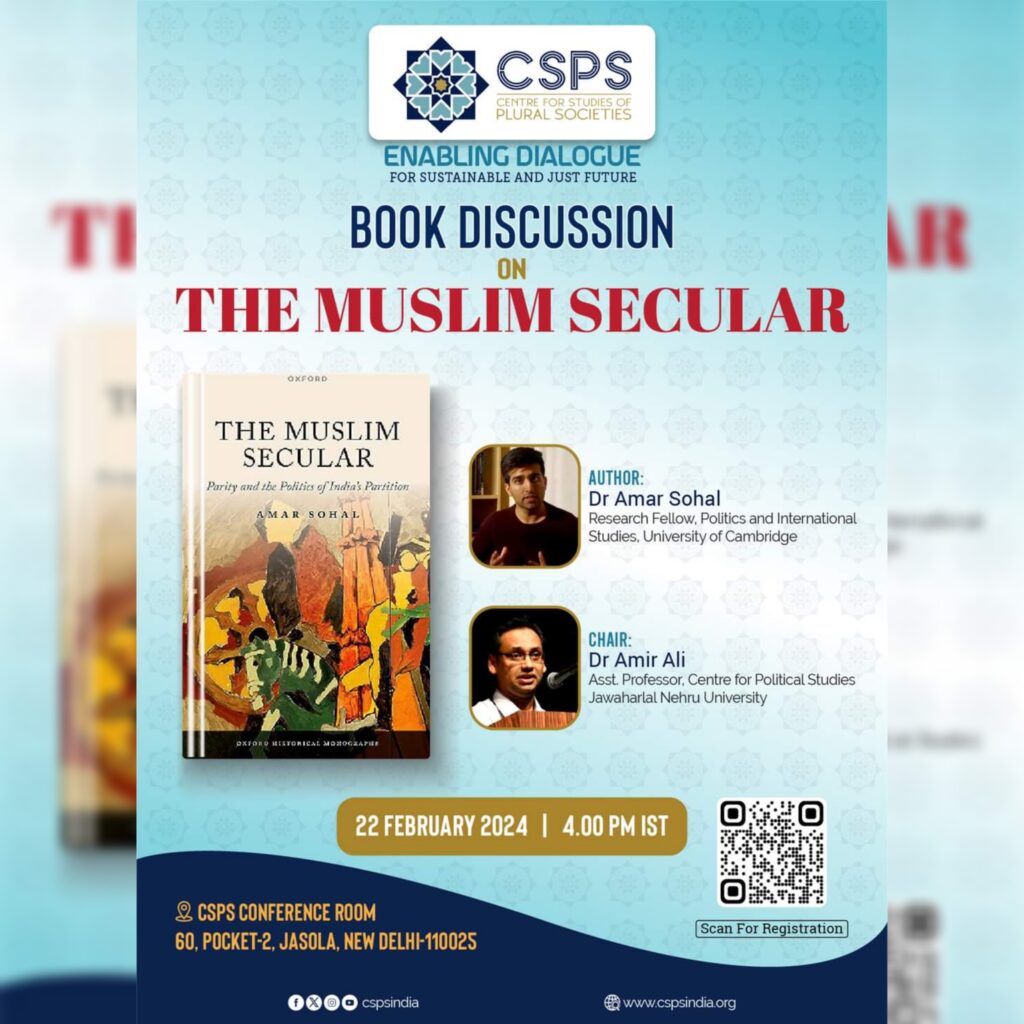 CSH is pleased to announce that Dr. Laurence Gautier, researcher and member of the Documenting Democracy: History, Politics, Citizenship area of the CSH, has been invited for a book discussion on “The Muslim Secular“, written by Amar Sohal, on 22 February 2024 at 4:00 pm. This talk is organized by the Centre for Studies of Plural Societies (CSPS) at the CSPS conference room. Register by QR code provided in the poster.