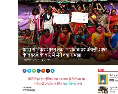 0 Ribadeau Dumas H. , (2021) फ्रांस से लेकर भारत तक, नारीवाद पर अंग्रेज़ी भाषा के दबदबे के बारे में मैंने क्या समझा। FII – Feminism in India (April 2021)